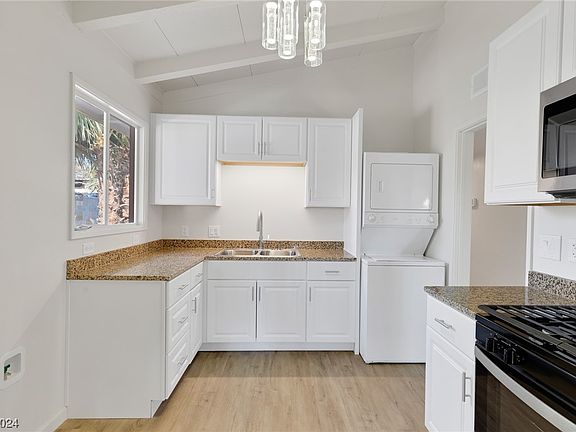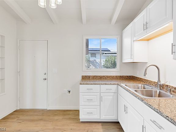 Welcome to this renovated single-family home in the heart of Vintage Las Vegas, offering practical and modern updates and has no HOA. Discover brand new white kitchen cabinets, providing a clean canvas for your style. The lightly used HVAC system and a brand-new water heater will help keep your maintenance costs low! Notably, the home features brand-new under slab plumbing, rarely found in homes of this age. Property also features brand new electrical along with a brand new 200A panel. New fixtures, a refinished covered patio, and a convenient storage closet enhance the home's functionality. Two of the bedrooms have separate entry to the home, offering versatility for multi-generational living or potential rental use. The whole house boasts new countertops and floors, while exposed beams and raised ceilings make the home feel spacious. Landscaping has been refreshed for a polished exterior. Explore contemporary living with a touch of vintage charm in this updated Las Vegas home.
