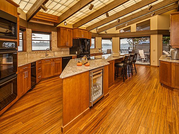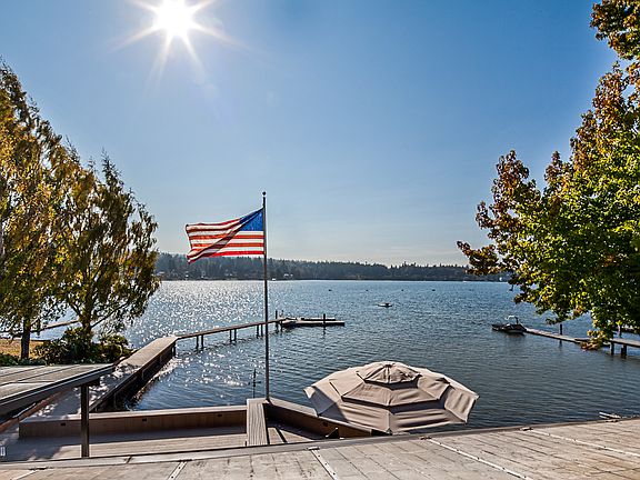 Perfect Lake Whatcom neighborhood with all day sunlight & 365 days worth of sunsets! SANDY BEACH makes for a great swim area. $160,000 renovation just completed. Knockout designer kitchen at water's edge. 3800 sq. ft. including 4 bedrooms, 4.5 baths, 2 living rooms, 3 gas fireplaces. Architectual masterpiece worthy of magazine awards. Intruiging floor plan includes a private patios & a master bd lanai overlooking the lake. Dynamic lake living on a quiet lane... it's a storybook setting!