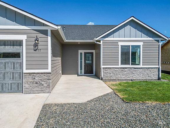 NEW CONSTRUCTION home by 3C's Construction in the desirable Canyon Crest subdivision! This single level home with a split floor plan has 3 bedrooms and 2 bathrooms, has NO STEPS, and is right around the corner from the park. Open concept kitchen, living, and dining area are perfect for easy modern living. Custom cabinets, quartz countertops and stainless steel appliances complete the kitchen and bathrooms. The 2 car garage is 24x26 and there is additional deep parking on the side of the house. The primary suite offers a full bath with soaker tub, water closet, and a walk in closet. Outside the back patio has a great view to the Northeast. New sod will be installed 4/10/25.