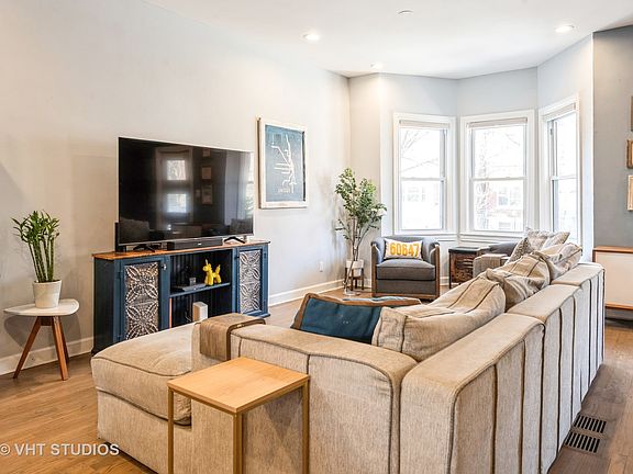 One-of -a Kind West Logan Square Gem This truly remarkable 3 bedroom, 3 bath home situated right off the 606 trail in West Logan Square. This home is anything but ordinary. A perfect blend of charm and modern. Step inside, and your greeted with high ceilings and sunshine that create an airy welcoming vibe. The kitchen is an entertainer's dream with updated appliances and space to entertain. Updated primary suite with walk-in closet and new renovated bathroom with double sinks and walk-in shower. Primary bedroom also has a private balcony overlooking the expansive backyard. Need a creative escape? The lower level is currently set up as a separate unit that is used as an Airbnb. But can be a great artist studio or family room. Outside, your urban oasis awaits: a huge 177 foot lot backyard with a pergola patio with electric, TV mount and fan. The garage has double full size automatic doors and a parking pad. So room for 4 cars. 2 inside garage and 2 on the pad. A must see! If you are looking for a really neat home, this is it.