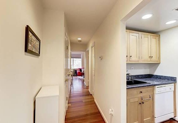 1737 P St NW #401, Washington, DC 20036 LOCATION, top floor, space, & wonderful layout. This 1 Bedroom has terrific 4th floor view of P Street just 1 block from Dupont Circle. Nice hard wood floors. Master bedroom has dual entrance master bathroom. Kitchen has a window and an exit to exterior charming fire stairs. Big living/dining room. Washer/Dryer in unit. Small 10 unit building w/secured entrance. Walking distance to Metro (Dupont Circle), Wholefoods and Safeway. Water and snow removal included. Unfurnished. Private parking offered for an extra: $100.