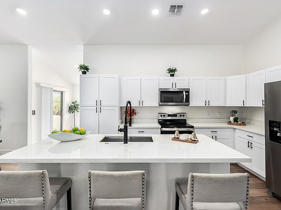 Beautiful kitchen with cabinetsBreathtaking viewsStunning arizona sunsetsCustom tile showerPrivate backyard oasisStainless steel appliancesHigh vaulted ceilings