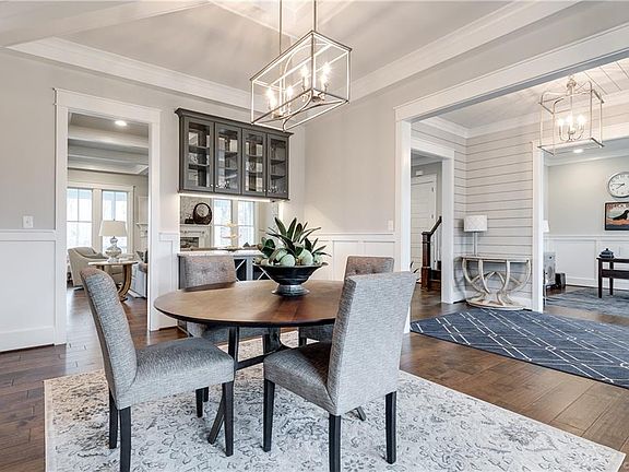 The Brookstone by Ray Williams Custom Homes combines functionality with beauty. With 5 bedrooms and 4 full baths, this farmhouse on the Southern Living Street of Hope in Hallsley, features a full front porch, perfect for sipping sweet tea with guests, a rear screened porch, open concept with extensive trim, including wainscoting, coffered ceiling and shiplap.The eat in kitchen has a breakfast nook, WOLF cooktop, a large island, cabinets to the ceiling with lighting and glass doors on the uppers.The oversized pantry offers plenty of storage for food items. This home has a first floor bedroom and a first floor full bath.The upstairs has a large rec room with barn doors! Space to play or study. The Jack and Jill bedrooms have large walk-in closets.The walk-in closet on the master is not to be missed. It connects right to the laundry room for ease of use.Master bath has dual vanities, a large shower with barn-style door, and a beautiful free-standing tub. The third floor is over 1000 square feet and is plumbed for a full bath and wet bar!The home is our decorated model and is open 1-5, Sat-Sun. $5000 towards closing costs with use of George Mason Mortgage and Atlantic Coast Settlement