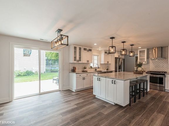 Are you looking for single level living with NO stairs? Imagine the memories you and your loved one make in this like-new remodeled, open-floor concept Ranch home with 4 bedrooms and 2 full baths! New leaded glass front door, gleaming textured laminated flooring and custom wood trim throughout the home welcome all who enter. This stunning home has designer quartzite kitchen with oversized Quartzite eat-at island. Virtually everything in this home is new or remodeled with building permits. New furnace, new AC, new Hot water heater, New Windows and Doors thru-out. New stainless steel appliances, new doors and windows, sliding glass door, drywall, canned light plumbing fixtures, new electrical panel, new added insulation, new garage, drywall, opener - all professionally done to code and with permits. This home has 54/211 District schools and is nestled on quiet tree lined street. Large private corner lot is fully fenced, and has concrete patio off the sliding glass doors and is ideal for BBQ-ing, entertaining and relaxing. 4th bedroom can be spacious family room. Set an appointment asap for a private tour and start packing. Quick Close Possible.