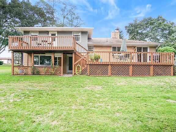 DEEDED Spring Lake access, mature trees and a huge yard highlight the exterior of this beautiful home. Recently updated with new kitchen & bath, this 4 bedroom 2 bath home is ready for its new owners. New appliances & backsplash highlight the spacious kitchen. The dining area has easy access to the large back deck & flows effortlessly into the living room with a real wood fireplace, picture window & full bath. Upstairs you'll find 4 nicely sized rooms, one with a private balcony & another fullbath. Lower level there is a remodeled family room with w/o to patio & backyard. The basement great room has potential to be an awesome multi-media room. Located across from the Spring Lake Country Club, on the bike path, just a couple hundred yards from the public boat launch,
