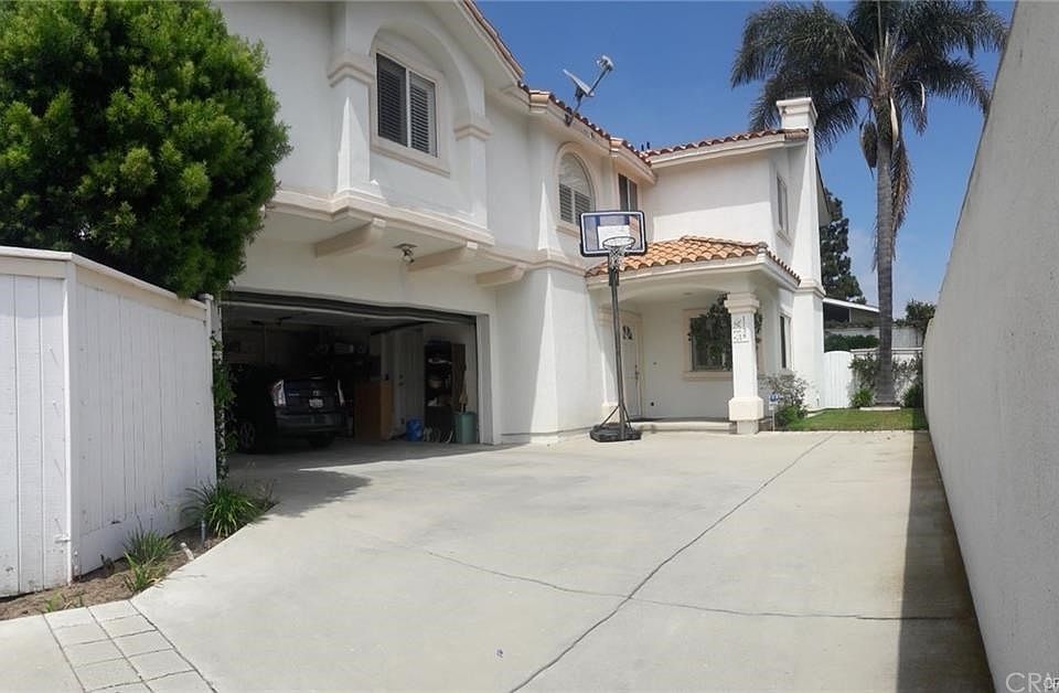 Light and Bright, open floor plan Mediterranean style of a 2 on a lot. Spacious kitchen with bleached oak cabinets and pantry. Good size formal dining area. Spacious living room with gorgeous hardwood floors and marble fireplace which opens up to a private backyard. 1/2 guest bath and laundry room are also on the lower level All 4 bedrooms are upstairs. Huge master suite with walk-in closet and vaulted ceilings. Master bath with separate soaking tub, shower and dual sinks. Plantation shutters throughout. 2 car attached garage with direct access. Award winning Torrance schools