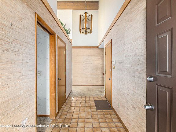 Spacious End-Unit Condo with Grand Ledge Schools in Desirable Willow Creek! Welcome home to this charming 2-bedroom, 2-bath condo, offering a rare blend of original character, spacious living, and a fantastic location within the Grand Ledge School District. Step inside through the inviting tile-floored entry foyer and discover a thoughtfully designed layout featuring an eat-in kitchen with abundant counter space, generous cabinetry, and all appliances included. The formal dining room just off the kitchen boasts skylights and a built-in buffet, perfect for entertaining. The open-concept living room impresses with vaulted, beamed ceilings, a brick fireplace, and sliding door access to the back deck, ideal for relaxing or hosting guests. A cozy den with built-in bookshelves overlooks the living area, providing the perfect space for a home office or reading nook. The main floor primary suite features a walk-in closet and an ensuite bath, while a second bedroom with double closets and a full guest bathroom complete the main level. The partially finished walk-out basement offers endless potential, with a large family room, wet bar area, and access to a patio that connects to the backyard and upper deck. The expansive utility room includes the washer and dryer, is plumbed for a third bathroom, and provides plenty of space to finish for additional living or hobby areas. Additional highlights include a 2-car attached garage conveniently located off the entry foyer, and a quiet end-unit location offering extra privacy and natural light. Don't miss your opportunity to own this spacious, character-filled condo in a peaceful setting, just minutes from shopping, dining, and major highways. Schedule a showing today!
