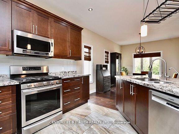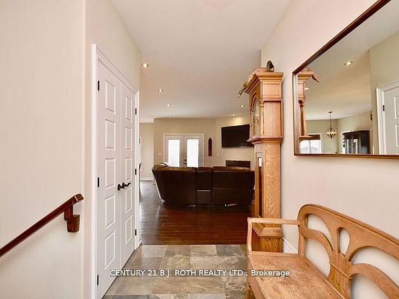 Beautiful Raised Bungalow in the fast growing community of Alcona. Shopping, schools close by. It is within walking Distance To Beaches/Parks/Boat Launch. Brick and Stone on the front show a beautiful welcoming entrance and vinyl siding on the back is low to no maintenance. The home offers 9' Ceilings, Hardwood floors on the main level. Brand new Broadloom in basement, Entrance from the garage in a convenient spot if the basement was to be used for an in-law suite for family. Upgraded Baseboards And Doors, Curved Edge Walls, French Doors Leading To large private Deck w/gazebo. Great functional kitchen with S/S Appliances, Granite C/Tops, high upper cabinets. Cozy family room on the main level perfect for snuggling by the gas fireplace and watching a movie or you can entertain in the basement which offers another gas fireplace and a large party size room! (some rooms virtually staged to assist with your imagination) **EXTRAS** 2 Laundry Hook ups on Main/Bsmt, Gas BBQ hook up on deck. Drive Thru Garage W/2 Doors In the Front 1 In the Back for convenient access to backyard or extra parking for 2 vehicles or a boat! Generator subpanel in garage ready for a generator. Innisfil Beach road to be widened for easy commute to hwy.