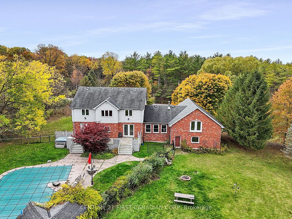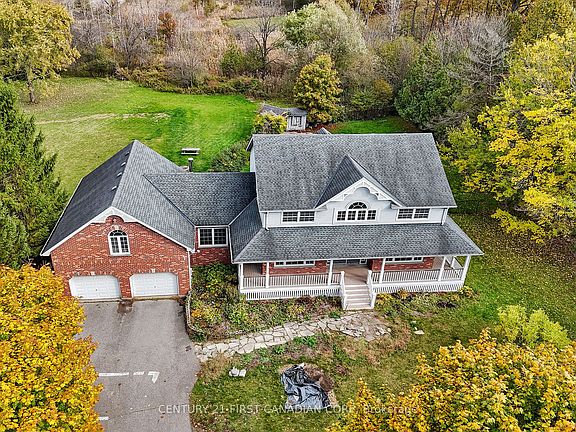 Discover the perfect blend of comfort and tranquility in this charming home, nestled in a beautiful country setting. Thoughtfully designed, the home welcomes you with a grand staircase, and 17-foot foyer ceilings, a large, updated kitchen ideal for family gatherings and entertaining while the living room has a great functional layout that offers both style and practicality. Features include 4+1 spacious bedrooms, 2.5 bathrooms, formal dining room, master bedroom offers a walk-in closet, and 5-piece ensuite. Enjoy the privacy of rural living while being just a short drive from all amenities. Situated on a 1.21-acre lot with mature trees, and an additional 1 acre lot directly beside the property , survey completed just awaiting finalization. The price for 1 acre lot can be purchase for additional $320,000 (together). Other features include in-ground pool, hot tub, 4 car garage, 6 car parking driveway, workshop, partially finished basement, neutral paint throughout, lots of natural lighting, tons of storage space. Whether you're relaxing on the porch, cooking in the generous kitchen, or taking in the beautiful views, this property offers a true sense of home with space to grow.