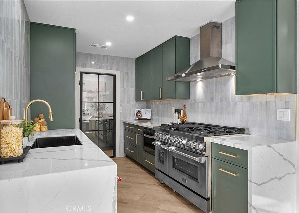 Beautifully updated single-level home on a quiet Huntington Beach cul-de-sac offering a seamless blend of custom finishes and modern design. The open kitchen features quartz waterfall counters, custom cabinetry, a commercial-style range with hood, farm sink, pot filler, butler pantry, and drawer microwave. Spacious living areas include a custom acoustic wall, tiled fireplace surround, new flooring, recessed lighting, dual-pane windows, and shaker-style interior doors. Both bathrooms are fully upgraded with modern fixtures, floating vanities, and custom tile surrounds. Exterior improvements include new stucco and stone, new glass entry doors, synthetic turf, new concrete hardscape, and epoxy garage flooring. Additional upgrades include a new roof, upgraded 200-amp electrical panel, and EV charger outlet. Convenient access to beaches, parks, shopping, and local amenities. Video tour available.