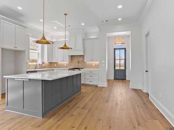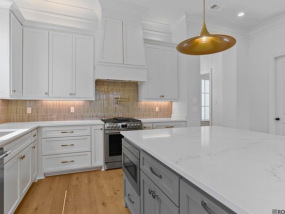 Don't miss your opportunity at this Lakefront Pro One Corp custom home in the highly sought-after Meadows at Oak Grove subdivision. This beautifully designed home showcases extensive detail, upgraded light fixtures, a dedicated office space, and a stunning coffered ceiling in the spacious living area. The kitchen is a chef’s dream, featuring abundant storage cabinets, a large island, stainless appliances, and a convenient pot filler above the stovetop. The primary bathroom includes a walk-in, multi-head shower with built-in seating, a freestanding tub, dual vanities, and direct laundry room access. Step outside to lake views and a covered back patio complete with ceiling fan, lighting, and a fully equipped outdoor kitchen with a gas grill—perfect for entertaining. An additional storage room is found at the rear of the home and has been roughed-in for optional conversion to a half bathroom. This home has comfort, detail, style, flexibility, and functionality and is ideally located near Airline Highway, shopping, dining, and schools. Enjoy neighborhood conveniences including a community swimming pool, clubhouse, green spaces, lakes, and sidewalks.