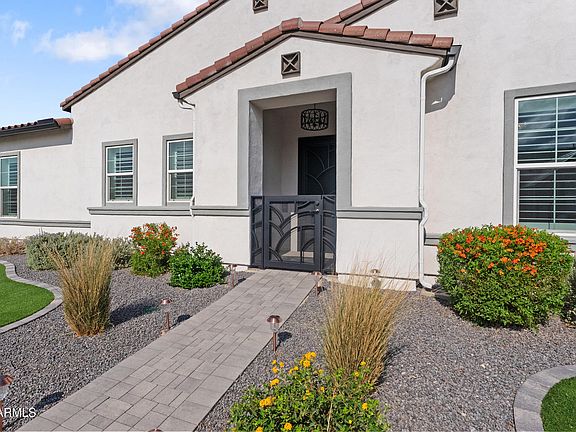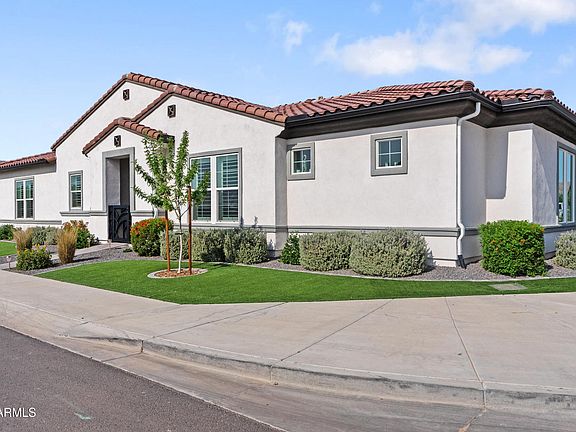 This is a stunning and luxurious Calistoga Spanish elevation home. The home is filled with elegant finishes and an open floorpan that flows from space to space and perfect for entertaining. Open windows and large sliding glass doors allow natural light throughout the home. The kitchen is spacious and the attention to detail is captivating. The home has a beautiful primary suite and large bathroom, an open den or office space, and another private suite with large bathroom. The backyard and patio has been beautifully designed for entertaining with large patio, BBQ grill, mister system, sun shades and turf. Plantation shutters throughout the home, beautiful neutral tile flooring through the home. The community offers pools, pickleball courts, private golf course, full service spa and restaurant