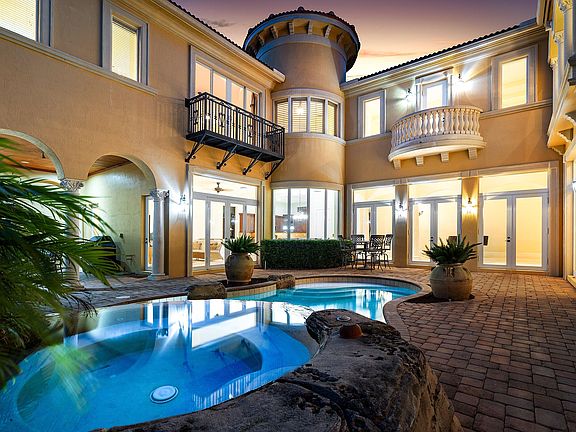 When designing this estate the owners spared no expenses. Some of the features include: All impact glass, whole house generator, 18x18 Saturnia marble tiles throughout the living areas, an elevator right off the master suite, 5 sets of french doors leading to the courtyard, sound system, Tesla charger in the garage, custom plantation shutters, security alarms for the pool, interior low voltage lighting, and so much more.