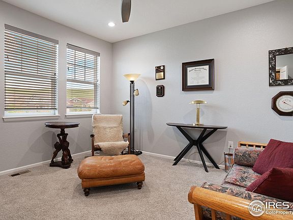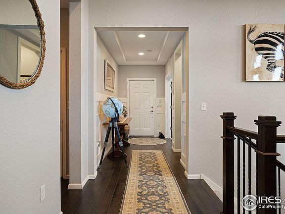 Welcome home to this stunning ranch-style home in the coveted Candelas community, offering exceptional curb appeal. Step inside to an expansive open floor plan that seamlessly integrates the stylish living and dining areas, perfect for modern living. The kitchen is a chef's delight, featuring a spacious island, stainless steel appliances, and a layout that overlooks the living space, making it ideal for entertaining. At the front of the house, you'll find a great home office, providing a quiet space for productive work. The large primary bedroom is a true retreat, boasting an ensuite bathroom with dual sinks, a massive shower with dual heads, and a large walk-in closet. Two additional spacious bedrooms share a convenient Jack and Jill bath. A well-placed laundry room adds to the home's functionality. The oversized three-car garage featuring a new epoxy floor offers ample storage and parking space. Outside, the backyard is an entertainer's paradise, featuring two separate seating areas, a fire pit, a spot for a hot tub, and beautiful landscaping. A dedicated dog run with astroturf ensures even your furry friends feel at home. Located in the vibrant Candelas community, this home is part of a master-planned neighborhood designed for active families. Enjoy resort-style amenities, pristine community parks, miles of trails, and the striking natural beauty of Colorado. The homes in Candelas are designed to reflect a distinctive and interesting character, making this community the perfect place to live life wide open. This home has been meticulously updated with premium upgrades, including freshly painted walls and ceilings, high-quality carpet and pad in the office, bedrooms, and hallway, and recessed can lighting in the office and primary bedroom. Ceiling fans were added to the office, living room, and primary bedroom. Exterior enhancements include GFI 110V outlets, and UV-blocking privacy window tinting. - Listing updates and special features in supplements.