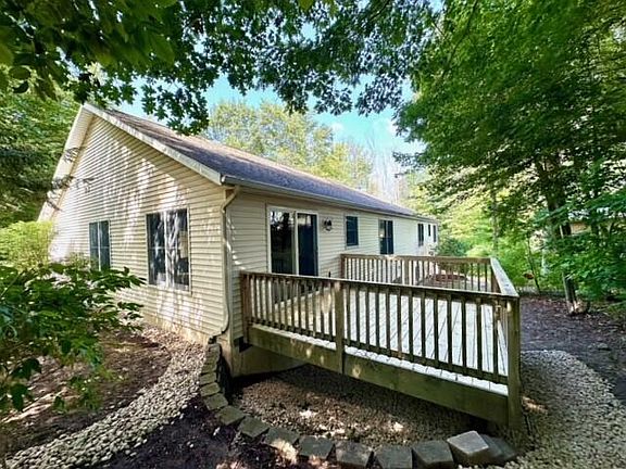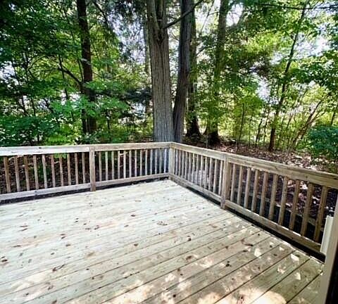 The updates don't stop there—this home also boasts all-new paint, floor coverings, and a new air conditioning unit for your comfort. The large main level primary bedroom has its own private bath with double vanity and walk-in closet. A second bedroom, full bath, and brand- new stackable laundry facilities are also located on the main level. From the dining room there is a slider out to the new back deck where you can enjoy beautiful wooded views. It is set in a tranquil backyard that's perfect for relaxation. The full basement, including a full bathroom, with daylight windows offers endless possibilities for additional living space.