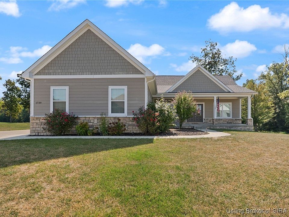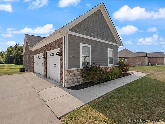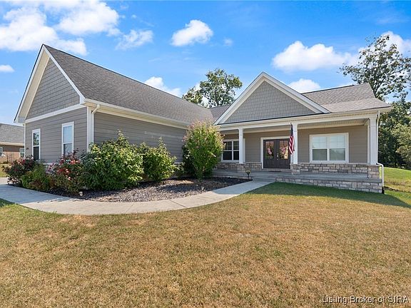 Luxury living in one of the most desirable locations in Southern Indiana!! MOVE IN READY This Custom 5 Bed/3 Bath with Finished daylight BSMT and 3 Car Garage sits on the Picturesque 3rd Hole in CHAMPIONS POINTE! Please see attached list of UPGRADES - to many to list here! Double front doors open to a Foyer with a Barrel-Vaulted Ceiling and Custom Wainscoting. The Living Room has a floor-to-ceiling Stone Fireplace flanked by built-in bookcases. The Kitchen has Quartz Counters, Upgraded S/S Appliances, Gas Stove with a Pot Filler, Walk-In Pantry and Glass Upper Cabinets! The master is spacious, with a Custom Feature Wall and Plantation Blinds. The Ensuite has a Custom Tiled Shower, Soaking Tub and WIC. The Main Floor has 2 Additional Bedrooms, Guest Bath and Large Laundry with Custom Drop Zone. The expansive FINISHED BASEMENT is perfect for gathering with its Great Room and LVP Flooring. It is also plumbed for a wet bar! Bedrooms 4 and 5, along with the third bathroom, offer extra space for Guests or Office use. There is also plenty of extra storage. Enjoy the Professionally Landscaped Backyard overlooking the Golf Course from the Covered Back Deck! Enjoy the Pool and Splash Pad /Pavilion, Playground, Tennis/Pickleball/B-ball Courts. All this plus access to CHAMPIONS POINTE Championship Golf Course, Clubhouse, Pro-Shop, Driving Range, Pub & Grill. LIVE HERE, STAY HERE, PLAY HERE. See Why So Many Buyers are CHOOSING CHAMPIONS POINTE. See attachments for a FULL list of UPGRADES