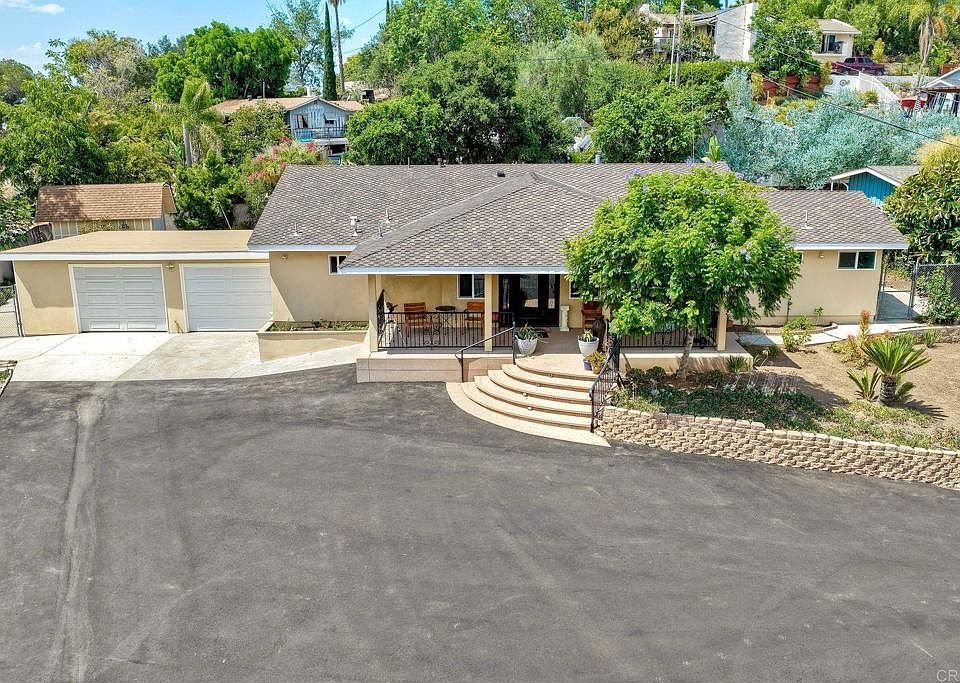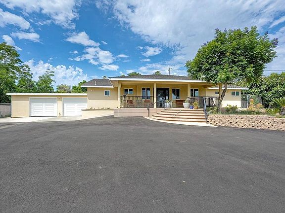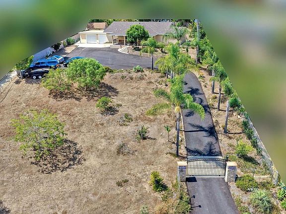 Panoramic Views & Private Vista Retreat on 0.61 Acres  Through the gated entrance, a long private driveway sets the tone for this secluded Vista retreat, offering both elegance and functionality. With abundant parking and a spacious layout, the property was designed for those who value privacy, versatility, and the freedom to shape their ideal living environment.  At the heart of the property is a three-car garage—well-suited for storage, projects, or conversion potential—featuring 220V wiring, a rear garage door with backyard access, and ample space for additional uses. An outdoor shed adds even more flexibility for tools, hobbies, or future expansion.  Inside, the 2,150 sq. ft. single-level residence blends comfort and sophistication. It includes three bedrooms, three full bathrooms, and a dedicated office (optional fourth bedroom), making it ideal for multi-generational families or those looking to create separate living spaces. The gourmet kitchen showcases JennAir stainless appliances, dual electric ovens, a gas cooktop, a walk-in pantry, and a large island perfect for gatherings. Expansive windows capture sweeping panoramic views, while the family room’s wood-burning stove provides a warm, inviting ambiance.  Modern upgrades ensure comfort and reliability: a newer A/C system with updated ducting and compressor, dual water heaters, and a five-year-old roof with a transferable 50-year warranty. Outdoors, an entertainer’s paradise awaits—featuring a built-in BBQ, generous patio space, and 220V spa wiring ready for your future hot tub—all overlooking stunning horizons.  The large 0.61-acre lot offers exceptional potential to add an ADU, guest house, or detached studio, opening opportunities for multi-generational living, rental income, or future investment.  Blending practicality with timeless design, this Vista retreat is a rare find—perfect for families, investors, or anyone seeking a private sanctuary with unmatched views and room to grow.