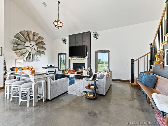 Custom! Custom! Custom! This home is spectacular from the inside out! It has 3 bedrooms with each having a private bath. The floors are heated upstairs and downstairs. Equipped with Pella windows and sliding doors, Granite counters, tankless water heater, zoned heat/air, Woodburning Fireplace, Cement floors down and hardwoods up. The upstairs is equipped with plumbing to add a kitchen if desired. Includes an oversized covered porch. Enjoy the 20x40 shop with 3 overhead doors and a lean-to. It's piped to have heated floors if desired. This home sits on 2.75 acres m/l with personal access to a pond. Located just outside city limits on a paved rd. 30 min drive to Tulsa and 20 min to I-40. Take a look at this immaculate home!