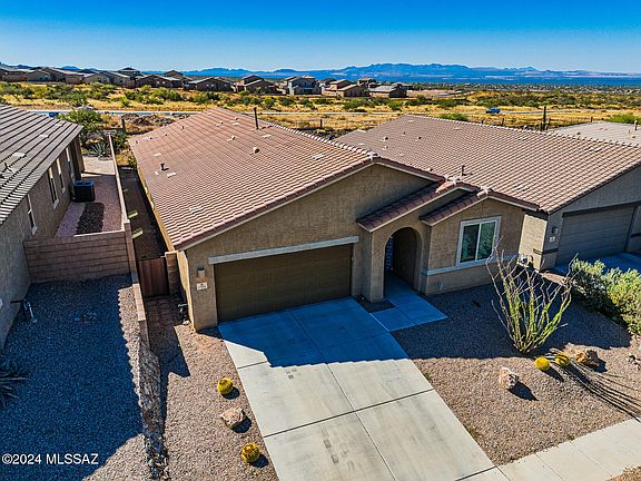 Meticulously maintained home built in 2018 located in the highly desirable Santa Rita Ranch community and Vail School District. 4 bed 3 bath with tandem garage. Highlighted features of this home include and upgraded gourmet kitchen with double ovens, over sized island, executive height cabinets, granite counter tops stainless steel appliances and water softener. Spacious open floor plan perfect for entertaining. Two master suites, the main master suite has large walk-in closet with double sinks. Ceramic tile in all high traffic areas and ceiling fans. Professionally landscaped front and back yard, perfect to enjoy the Arizona sunset and sunrise from the backyard. Highest elevation lot in the entire community. Move in ready.
