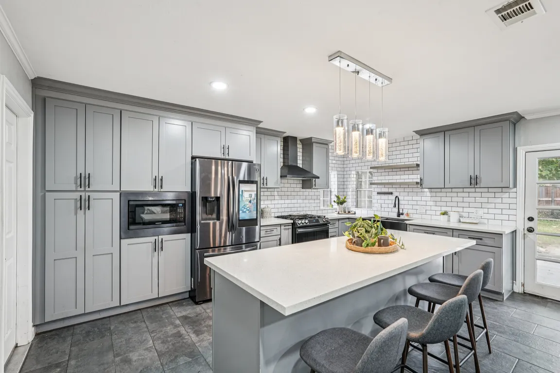 - Features: Kitchen Island, Kitchen/Family Room Combo, Quartz Counters, Remodeled, Updated Kitchen
