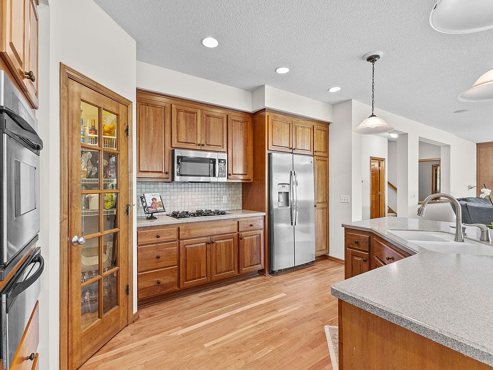 The lower-level walk-out entertainment room is designed for fun, complete with a wet bar and plenty of space for a pool table or other games. Additionally, there is a cozy family room with a fireplace ideal