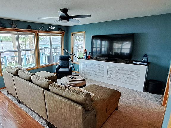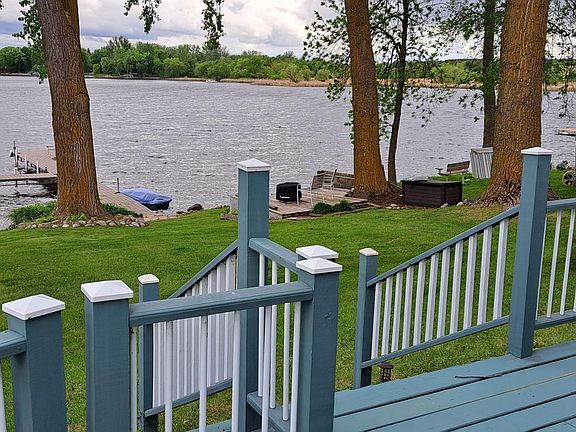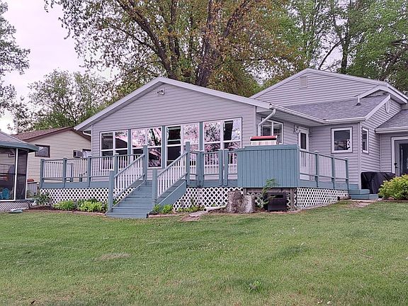 This charming rambler offers peaceful lakeside living on beautiful Pelican Lake—just minutes from Lake Minnewaska! Enjoy one-level living with a bright, open layout featuring a wall of windows in the living and dining areas that flood the space with natural light and frame stunning lake views. The kitchen showcases raised oak panel cabinets with crown molding and a convenient pass-through to the formal dining room. The spacious primary bedroom includes a walk-in closet with a barn door, private ½ bath, and direct patio access. Two additional bedrooms easily accommodate multiple beds, while a den/bonus room provides extra sleeping or hobby space. An oversized 24'x26' heated garage and 10’x20’ shed offer plenty of room for lake toys and gear. Outside, enjoy low-maintenance vinyl siding, a breezeway connecting the garage to the home, a large deck overlooking the water, a cozy lakeside deck, and a level yard with a gazebo—perfect for entertaining or unwinding. Additional highlights include ceiling fans in the bedrooms, a front patio, gutters, and ample parking for trailers or campers. Pelican Lake spans approximately 520 acres with a max depth of 34 feet—great for fishing, boating, and all your favorite lake activities.