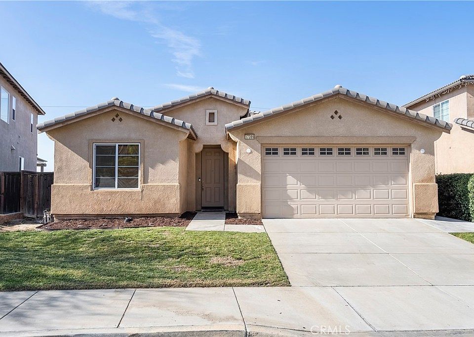 Stunning single-story home with a View. Located on a Cul de sac in the desirable Moreno Valley Ranch West Village community. This floorplan offers the perfect layout. Upon entry the upgraded tile flooring and beautiful decorator touches will confirm that this is the home you have been looking for. The 2 additional bedrooms are located at the front of the home along with the 2nd full bathroom, providing privacy and perfect for multi-generational households. As you continue down the entry way there is a flex space that is perfect for a formal dining room or office/den and complete with a dual sided fireplace. The great room is oversized and has an abundance of natural light from the large windows that look out towards your rear yard and beautiful View. The kitchen is open to the great room and offers an immense number of cabinets including a large center island, quartz counter tops, stainless steel appliances and a work desk space. The dining area opens up to the kitchen and allows access to your expansive rear patio. The primary suite is located on the far end of the home creating that private retreat you have been dreaming of. The primary bedroom is large and has windows that look out towards the view of the city. The primary bathroom features a separate soaking tub, shower, dual vanities and a walk-in closet. The laundry room is located off the hallway. Head out to the back yard and take in the view and enjoy the privacy of no rear neighbors. The large cement patio offers the perfect space to entertain, BBQ or relax and enjoy the tranquility this home offers. There is a large area at the end of the property that would make a perfect garden or room to plant a fruit tree orchard. Low HOA fees along with lower taxes adds to the affordability this home offers. There are nearby hiking trails, Lake Perris and the fair grounds, along with close proximity to schools, restaurants and