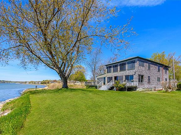 Spectacular Waterfront setting on Greenwich Bay! Shingle style residence in Olde Buttonwoods! If you are looking for a privacy and waterfront, this is your stop. Originally constructed in 1939 on a bluff overlooking the bay, this 2400 sq. ft residence is ready for a new family to celebrate and to potentially update this home. Large open flow floor plan with stone fireplace and walls of glass to the water. Huge wrap around deck. Also the covered porch on the west side is not included in the square footage. 4 Bedrooms and two full baths on the second level. Oversized detached two car garage. Neighborhood was modeled after Oak Bluff on Martha's Vineyard. Lots of open space, nature walking paths, ballfields, beaches. recreation hall(withe stage and duck pin bowling, called The Casino,) non denominational Chapel, basketball court, clay tennis courts, composition tennis court and pickle ball court.