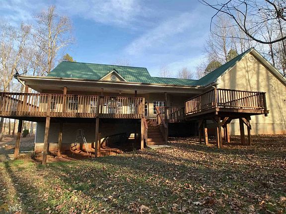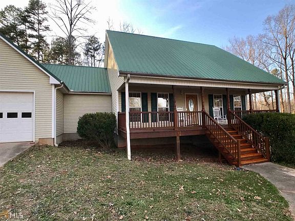 Sweet country ranch with metal roof and basement on 3+/- acres in popular Jackson County, has long front porch to enjoy the view of your huge front yard. Enter the foyer, to the left is dining room and straight open vaulted living room to kitchen. 3 BR/2BA on main level. Master suite has tub, separate shower and double vanity and walk-in closet. Split bedroom plan has 2 bedrooms on other side. Partially finished basement used as a bedroom has adjoining workshop area. Eat-in kitchen overlooks partially covered double decks. Wooded backyard offers lots of privacy. Separate 2 car shed with roof that may need repair. HVAC only 3 y.o.