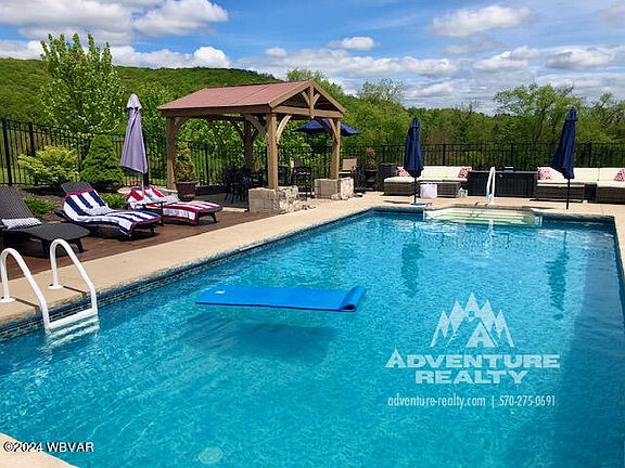 Immaculate home and property in the hills of Pennsdale!! This house has breathtaking views of the valley, ample outdoor space with outdoor fireplace and bar, saltwater pool, spacious custom kitchen with granite countertops and hardwood cabinets, hardwood floors throughout first floor, new carpeting on second and third floor, indoor gas fireplace, 3 car garage, 4 bedrooms and 2 1/2 baths on 3 finished floors, new heat pump and paved driveway, all on 3.6 acres in the Muncy School District.