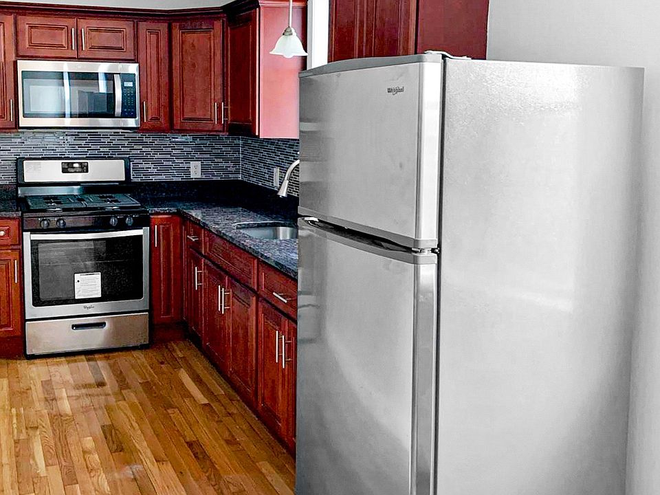 Remodeled apartment , new kitchen, new bathroom , freshly painted! Laundry in building! One of the rooms is small! No pets