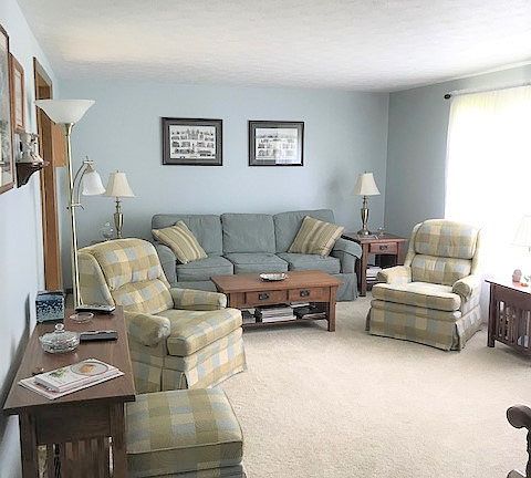 Meticulous! A home with lots of room and updates. Great kitchen with counter seating. Appliances are included and in the newer stainless look. Large living room, formal dining room with good natural light from the new windows. A surprise is the wonderful sun room. Wood panel vaulted ceiling and lots of windows overlooking the expansive yard. A great room in the lower level with a sliding door to the covered cement porch reaching out to the large yard. The mechanics of the home are newer. The 2 car attached garage is spacious and has a man door leading to the exterior cement porch out back. Ref.#2542