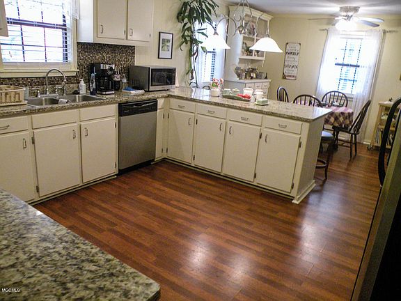Hidden gem within the city limits of Lucedale with privacy, surrounded by woods. This 3/2 offers a cover front and back porch, granite countertops, a commercial style oven, patio, concrete walks and a covered carport. Work shop / shed and just minutes from town.