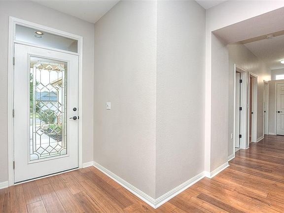 Located in the sweet spot of the community, Neighborhood 11, this Sun City Texas Dickinson offers afternoon shade at the Covered Patio viewing the landscaped back yards of neighboring homes. What ideal positioning for lower property taxes! Inside, gorgeous newly-installed wood floors claim the Great Room with Dining and gas-log Fireplace, as well as the Halls. Meanwhile, fresh tile blankets the "wet areas" including the roomy Open Kitchen, with some newly-installed stainless steel appliances and a generous bay-windowed Breakfast Nook overlooking the front yard and streetscape. The heart of the home, the spacious Kitchen is perfectly-placed, flanked by the Formal Dining portion of the Great Room, and by the before-mentioned Breakfast Nook. Plentiful counter space and a handy Pantry Closet complete the room. Fun corner windows outfit the Third Bedroom, which makes an ideal Study or Computer Room, while the nearby Guest Bedroom is adjacent to the sparkling Guest Bath. A large bay window enlarges the Primary Bedroom, where freshly-installed carpet deems the home Move-In Ready. The en suite Primary Bath boasts dual vanities, a seated shower and a generous Walk-In Closet. On the way to the Extended Garage, notice the Laundry Room includes a hook-up for a future sink.