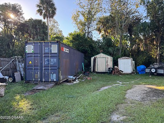 Almost a full acre, Ormond Beach, in town. 197x212. Potentially dividable (See proposed split in documents). Home on the property is a tear down or possible outdoor storage. Room for RV or Boat or toys. Electric, city water and city sewer. Steel shipping container conveys. Zones R3. Cash only.