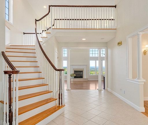 Discover this stunning contemporary home nestled on over 2.5 acres of picturesque land with breathtaking mountain views! The grand brick entryway and tiled foyer welcome you with high ceilings, a dazzling chandelier,and an elegant staircase. Inside, hardwood floors, decorative moldings, and upscale finishes flow throughout spacious rooms. The family room features cathedral ceilings and abundant natural light. Across the foyer, the formal dining room showcases crown moldings and beams. The great room offers large windows with panoramic mountain views, a cozy gas fireplace, and a wet bar perfect for entertaining. Enjoy evenings outdoors on the private screened-in porch or the expansive back deck. The gourmet Curio Kitchen boasts a center island ideal for casual meals and gatherings. Upstairs, the primary suite features tray ceilings and a luxurious en suite with a tiled Jacuzzi tub and shower, double vanities, spacious closets, and more! Spectacular sunsets await a new owner!