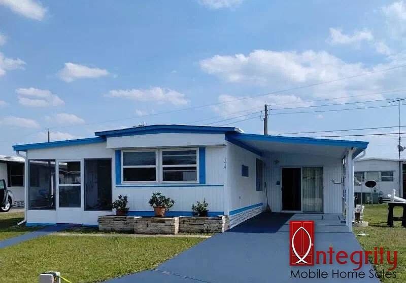 This furnished 1972 mobile home, featuring two spacious 14 x 30 sunrooms (approx total 1200 sq ft), is located in Twin Palms Mobile Home Park, a 55+ pet-friendly, gated community in Lakeland, Florida. This home has seen numerous recent upgrades! New double-pane windows have been installed in the kitchen, bedroom, and bathroom, while new flooring and subflooring extend throughout most of the home. The exterior has been freshly painted and includes a digital antenna for local channels. The enclosed front porch has new screens, indoor-outdoor carpeting, a fresh coat of paint and serves as the perfect greenhouse area for plant lovers! The metal roof was resealed in 2021 for added durability. The central air and heat system remains in good working condition, with a recent $500 upgrade to the heating coil, increasing heat output by 20%. Inside, the home offers a large master bedroom, a guest room, and an updated bathroom featuring a new vanity, toilet, and flooring. The two sunrooms provide ample natural light and additional living space. Recently, the home passed a 4-point inspection for insurance purposes without any issues, confirming its solid condition. With its numerous upgrades, comfortable living spaces, and location in a vibrant, active community, this home is move-in ready and perfect for those seeking both comfort and convenience. Under new ownership and management, the park has undergone significant improvements, including an upgraded pool area with new stonework, chairs, and landscaping, as well as an outdoor fireplace and a remodeled shuffleboard area. Residents can also enjoy newly installed Pickleball courts, a dedicated dog run for their pets, freshly paved streets throughout the community, and a renovated clubhouse offering a variety of community activities. Call today for an appointment to see this home! All listing information is deemed reliable but not guaranteed and should be independently verified through personal inspection by appropriate professionals. Integrity Mobile Home Sales cannot guarantee or warrant the accuracy of this information, measurements, or condition of any property. Measurements are approximate. Lot rent is subject to change.
