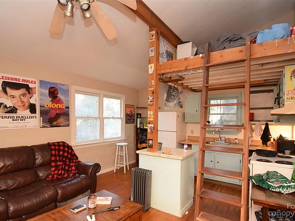 Super Tiny Tree House just off Hwy 105 in Boone on 7.75 acres! Overlooking the Watauga River across the road. Sweet location is only minutes away from Appalachian State University, Grandfather Mountain & all the ski resorts in Boone, Blowing Rock & Banner Elk! Unique very tiny house built in 1975 is 338 sqft and features steps from parking spot up to the tiny house in the woods! House is ready for a full renovation! Living room / kitchen combo with sleeping loft above the kitchen. Bonus room with stacked washer dryer & full bath. Amazing acreage has additional home sites with plenty of room to expand or build more tiny houses! Road built a quarter way up the mountain, is overgrown but you can hike up to see the additional property, path is to the right if you are facing the house. House is occupied by a tenant that has a lease that will convey. Proceed with caution on the porch, small section next to house has fallen in. Amazing winter views! Additional 4.5 Acres +Small House Available