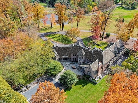 Designed by award winning NYC based architect Jeffrey Beers and featured in NJ Home magazine, this extraordinary stone manor estate is the pinnacle of refined, luxury living. Set on 12 picturesque acres, the 5 bedroom & 6.2 bath residence showcases premium craftsmanship & dazzling architectural details, including dimensional ceilings, custom doors/windows, designer tile & high end fixtures. The main level impresses with a grand foyer/sweeping staircase, dramatic formal dining room with bespoke built-ins, spacious living room with barrel-vaulted plank ceiling & private BR suite. A desirable floor plan includes abundant windows with natural light & breath taking views throughout. A chef's dream kitchen features professional-grade appliances, dual oversized marble islands, custom lighted cabinetry, a window-lined banquette, butlers pantry, & adjacent wet bar. Upstairs, the stunning primary suite features a gas fireplace, dual walk-in closets, & spa-like bath. Two additional bedrooms are spacious with ensuite baths & generous closets and a fourth bedroom suite offers a separate entrance. The walkout lower level is impeccably finished with built-ins, wet bar, home theatre, rec room & full bath. From a scenic pond to a resort-style heated pool, the private & manicured grounds offer an unparalleled retreat for outdoor living. With a Far Hills mailing address, this one-of-a-kind residence is minutes away from premier Basking Ridge Schools, shopping & major highways.