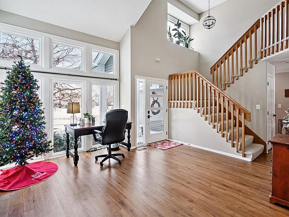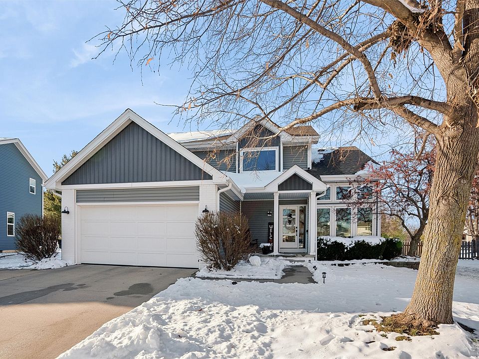 Welcome to this charming two-story home in growing Waukee, perfectly positioned by backing up to Windfield city park. You'll also find its convenient location is close to the Waukee downtown triangle and the original Waukee schools. Set at the middle of a cul-de-sac it's perfect for backyard relaxation and entertaining, highlighted by a wonderful three-season porch—one of the home’s standout features. Curb appeal is top notch on this home, from its vibrant new siding to new windows that stretch from the ground all the way to the roof! Professionally installed trim lights adorn the new gutters to allow for hassle-free home lighting throughout the whole year. A beautiful staircase brings you upstairs to the three main bedrooms including a primary en-suite with feature tub, dual sinks and private shower/toilet room. In the main living area, there is a gorgeous wood burning fireplace and built in shelves from floor to ceiling. This area is highlighted by even more natural light from the window lined back wall allowing views into the beautiful and spacious backyard! Fresh new carpet lines the stairs leading you to a newly remodeled second living area in the lower level. You'll also find the fourth bedroom, or exercise and weight room as it is now, along with a fully updated bathroom, and ample storage rooms. This home is ready to find its new owners!