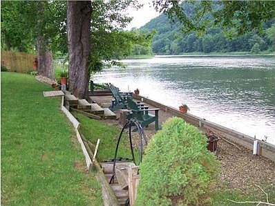 Riverfront living at its finest! This custom built, authentic log home is situated on .35 acres on the Allegheny River. Not only can you enjoy all the advantages of outdoor living on the river, but you will also enjoy all the inside of this home has to offer. Features include vaulted ceilings, skylights, custom lighting, antique oak pocket doors, and ample storage. A leaded glass door leads to the gourmet kitchen which boasts a built in stainless steel cook top, stainless steel dishwasher, built in electric oven, large center island for family gatherings, and plenty of cupboard space. Large, open concept living and dining rooms make entertaining a breeze. Master bedroom features a private entrance to the screened in sun porch, attached walk in closet, laundry area, and master bathroom with jetted tub, corner shower, and skylight. Large pantry area could be converted to a third bedroom if so desired. If you are looking for a riverfront lifestyle, this is the place for you!