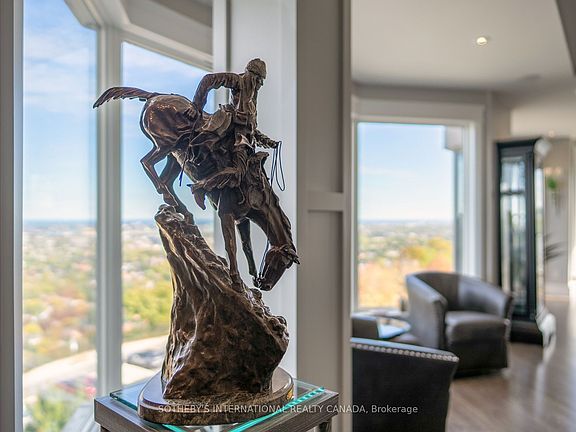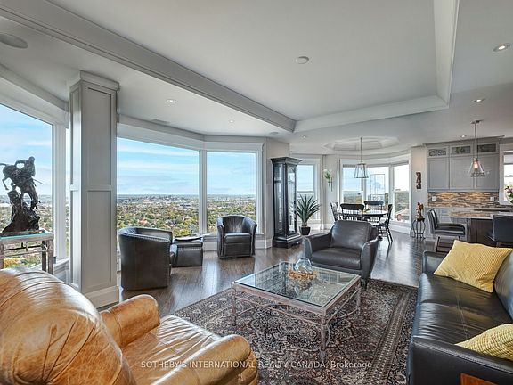 The Madison - Elevated Living with Style and Serenity Set high along the edge of the Niagara Escarpment, The Madison is one of Hamilton's most exclusive and sought-after residences. With just two suites per floor and direct elevator access into your home, this quiet, boutique building offers exceptional privacy, comfort, and breathtaking views - all the way to the Toronto skyline on a clear day. This beautifully designed 2,400 sq.ft. residence was thoughtfully crafted in collaboration with an architect to combine timeless elegance with modern function. The layout is both spacious and versatile, featuring two large bedrooms, a den, a cozy family room or library, two bathrooms, and an open-concept great room - ideal for hosting guests or enjoying relaxed everyday living. Walls of floor-to-ceiling windows bring in incredible natural light and showcase sweeping south, east, and west views of the city, lake, and escarpment. Quality finishes are found throughout - including engineered flooring, crown mouldings, rounded corners, custom cabinetry, designer lighting, built-in speakers, and heated bathroom floors. The kitchen is a standout, with a large granite island, plenty of storage, and a walk-in pantry with a second fridge - perfect for entertaining or simply enjoying your space. Step outside to two private outdoor areas: a 400 sq. ft. terrace equipped with gas, water, and electrical - great for summer dinners, container gardening, or relaxing in the sun - plus a bright balcony off the second bedroom, perfect for quiet morning coffee or catching the sunset. Additional features include two underground parking spaces right by the building entrance and a large private storage locker just steps from your units door. Located in a walkable, well-connected neighbourhood, you're just minutes from the Juravinski Hospital, boutique shops, cafés, library, local parks, transit, and the popular escarpment stairs - perfect for a scenic stroll or your daily exercise
