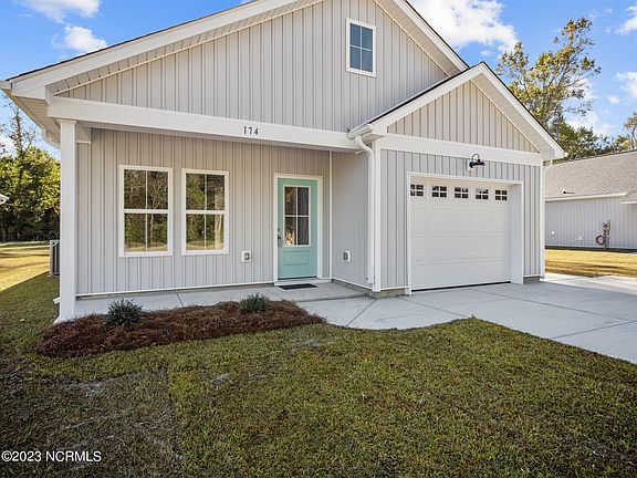 HOTTEST NEW CONSTRUCTION IN SWANSBORO! Custom Built Spec Home the builder built this house as if he were going to live in it. Featuring 1292 heated square feet, with a large open 3 bed and 2 full bath floor plan. This plan offers two bedrooms and a primary bedroom with tray ceilings. The primary bathroom has a 5' shower, double sink vanity, and huge master closet. All bedrooms and baths are thoughtfully insulated/sound proofed for privacy. Well-arranged kitchen with soft close cabinet doors and drawers, granite countertops, disposal, dishwasher, range, and microwave that is vented to the outside. Hate carpet? We got you with LVP flooring throughout the home.This home also features a large, 300 sqft single car garage with insulated walls and ceiling to help control homes energy efficiency. (10' W x 7'H) insulated garage door, with exterior side entry door to prevent from having to enter house through the living area and enter into a spacious mudroom. There is also a pull down stairs for attic access with additional storage. Country style front and rear porch for leisure time. ONWASA water, and Sewer allows use of the entire lot without worries of a septic tank and plenty of room to park your boat trailer/ camper or have that vegetable garden. Also, you may like to build that she-shed for storage or shop or crafts. There will be a 6' x 100' vinyl privacy fence between each home.