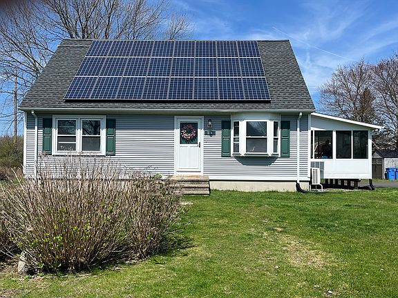 Discover the perfect blend of charm and modern convenience in this delightful 3-bedroom, 2-bathroom Cape Cod style home, ideally situated on a desirable corner lot. Step inside to find an updated kitchen featuring sleek stainless steel appliances and a convenient breakfast bar. The main floor also boasts a spacious primary bedroom offering a private retreat complete with a cleverly integrated office space. You'll appreciate the tastefully updated first-floor bathroom. Relax year-round in the sun-drenched, four-season room located just off the kitchen. Stay comfortable in any season with efficient ductless air conditioning throughout the home. With two additional bedrooms upstairs and a second full bathroom, this home offers flexibility and space. On the warm weather days, get outside and lounge on the trex covered deck or go cool off in the above ground pool. With almost a half acre lot, there is plenty of room for activities as well as a new shed to store all your gear!
