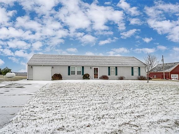 This cozy ranch home on one acre gives you the feeling of living in the country with no rear neighbors. Enjoy some quiet time sipping tea on the back patio without being too far from all your needs in town. Spacious great room leads into the dining room with views of the open fields in the back. Dining room connects to the open kitchen with island and lots of storage making entertaining and cooking easy.Master bath is in the back of the home with its own connecting full bath. Secondary bedrooms have good storage and are roomy in size. The garage offers a lot of space as well and has a separate room attached that has duct work already in place offering heat and a/c along with a window view of the beautiful backyard. Could easily be used as a home office or option for more storage or craft room. Septic is located in back. Propane tank is rented. Home is an estate sale. Inspections are welcome but no repairs are being offered. All appliances including washer and dryer included. Reverse osmosis system. Anderson sliding patio door installed within last few years. Well pump. Home features peroxide filtration system as well.