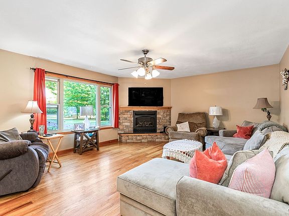Gas fireplaceBack deckBeautiful flower bedsHalf bathroomFire pitPrimary suitePole barn