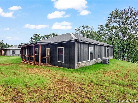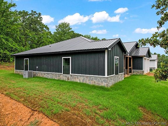 Nestled atop a hill, this home boasts exceptional panoramic views that stretch for miles, providing a picturesque backdrop where every day feels like a retreat. The modern farmhouse is within the serene Portman subdivision less than 10 minutes from Lake Texoma, Westbay Casino, and the new Hard Rock Hotel that is expected to open 2026. As you approach, you'll be greeted by a reclining open deck front porch, offering a perfect spot to bask in nature's beauty. This home harmoniously blends into the lush hardwood surroundings. The exterior is a captivating blend of hardie plank and stone wainscot, setting the stage for an enchanting interior experience. As you step inside, your eyes will be drawn to the magnificent open concept. The generous living area exudes warmth and comfort. The front of the home is adorned with expansive windows, allowing natural light to flood the space and provide picturesque views. The design encourages seamless flow and sociable gatherings. The kitchen has an island offering bar-top seating, granite countertops, cabinet space, and gleaming stainless steel appliances. Adjacent to kitchen is a cozy dining area. This home offers three generously-sized bedrooms and two bathrooms. The master bath pampers you perfect for unwinding after a day of adventure. Don't miss the opportunity to make this exceptional home yours and experience the best of comfort of Oklahoma living.