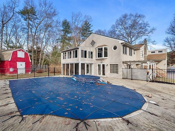 Engineers conceptional work of proposed plan is complete on extra lot! **Possible 2 additional Accessory Dwelling Units (ADU) ok for long term rental. Relative or non-relative. Family compound, rental units or in laws. Equestrian retreat with 28x36 2-story barn. Private & beautifully situated 7.94 acres of land in an idyllic setting. Located adjacent to Burrage Pond Wildlife Mgmt Area w/trails, birdwatching, fishing, and hunting, First floor separate entrance for your home office, guests or extended family. 3 fireplaces. The MB with its vaulted ceilings, custom dressing room & book nook has access to the sunroom. Yoga studio. Bath with jacuzzi tub. A private oasis. MB overlooks the heated 18 x 36' gunite pool & hot tub/spa. Enjoy the view of the pool from your sunroom or sit on the front porch and watch the birds. Serenity and tranquility abound. Barn w/2 horse stalls have full 2nd floor or use as a garage w/workshop & storage. 3 minutes to Hanson MBTA