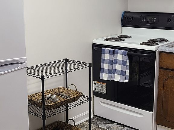 Owner-occupied duplex. Utilities included. Unit fits 2 people comfortably. Unit has 1 bedroom, 1 bathroom. Laundry area with washer/dryer, storage cabinet and shelves. Kitchen with full size refrigerator, stove/oven, microwave, coffee maker, blender, utensils, dishes and pots/pans. Dining area and living room with smart tv. Bonus room that can be used as office space. Wi-fi available. Private driveway and parking space.