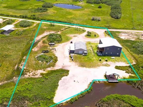 FRESHER PRICE ON 2 ACRES! Plus, relaxing views of Powderhorn State Park and Live Oak Bayou, which runs from Matagorda Bay to the ICW. Enjoy Views of Powderhorn Ranch, assorted birds, deer and even Live Oak Bayou, from kitchen sink, front porch, and from the waterfront Gazebo. Throw a lure from your lawn chair! Lift in attached garage, up to main house, makes life easy! Quonset Hut Style Barn/Carport (1,400 sf) stores 3 Boats: offshore, bay and flounder. Two-Stall, attached garage creates more space for shop / vehicle storage with “buddy room bed/bath” and Utility room. Covered porch, at the top of exterior staircase, leads into main house where vaulted ceiling and open spaces greet you! This great room includes living, kitchen w/breakfast bar and gas cook top, built-in pantry, 2 dining areas, and even a separate office space. Elaborate kitchen includes Granite counter tops, built in oven/microwave, center island and tons of cabinet space. 3 bedrooms and 2 baths upstairs have walk-in showers. Buddy room, downstairs has bath/shower combo. Front porch upstairs has awesome view of Powderhorn Ranch and Live Oak Bayou. Fire pit area set up for cooler nights, in POC. 2 garage doors in attached garage have room for boats and golf carts and even room for a shop area! Separate Quonset Hut holds offshore, bay and flounder boat and has an extra storage area (400 sf) attached. 2 acres means plenty of room to spread out and allows for loads of parking space for your family and friends, and their trucks, boats, and trailers. Relax in the open spaces and enjoy the view of the Powderhorn State Park and all its wildlife, on Live Oak Bayou!